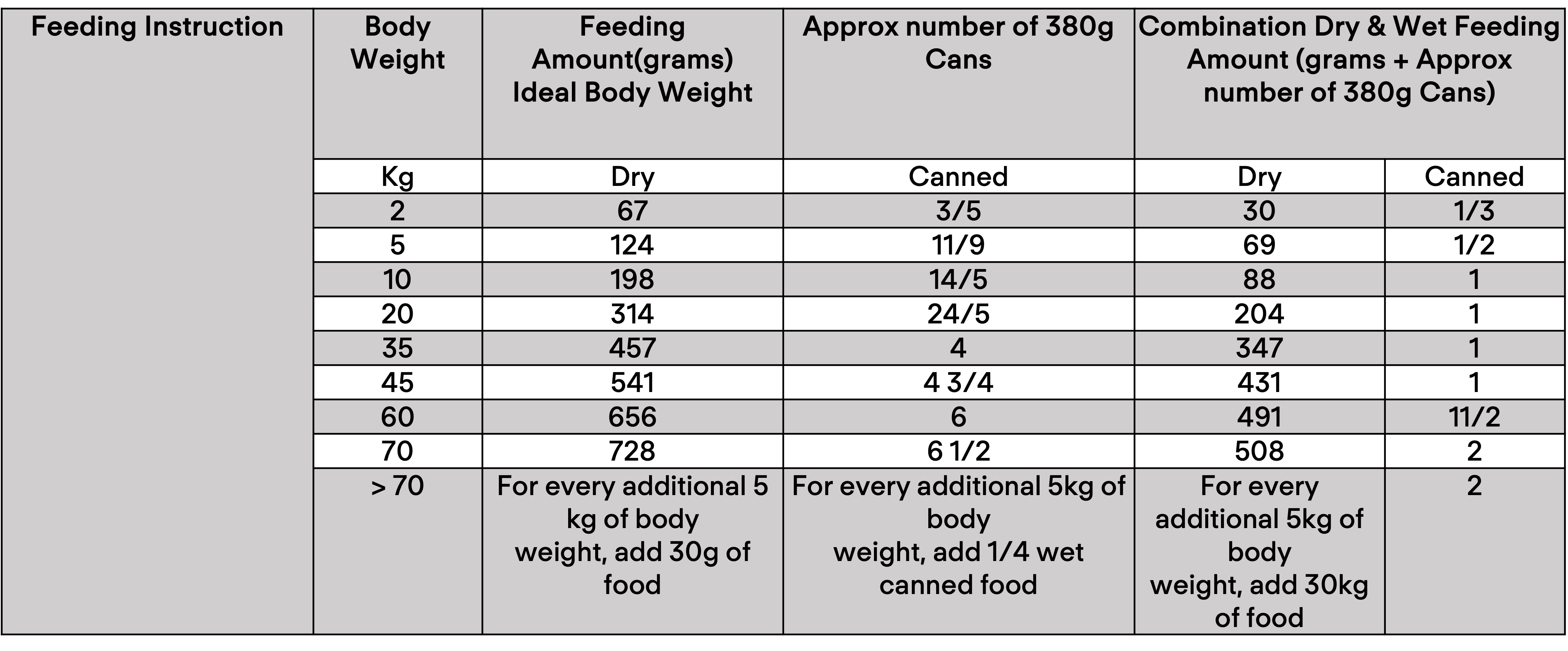 Feeding Instructions